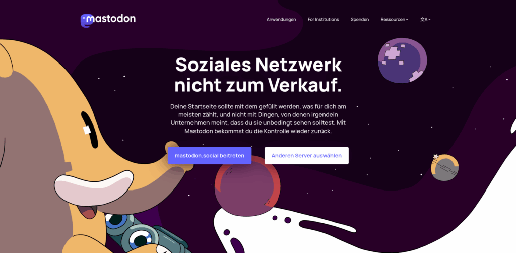 Mastodon wurde 2016 als dezentrale Alternative zu Twitter gegründet. Es besteht aus vielen unabhängigen Instanzen, die miteinander verbunden sind – das sogenannte Fediverse. User behalten die Kontrolle über ihre Daten und können frei wählen, welchem Server sie beitreten. Mastodon legt besonderen Wert auf offene Standards, Datenschutz und eine respektvolle Netzkultur ohne Hass oder Algorithmenmanipulation [6].