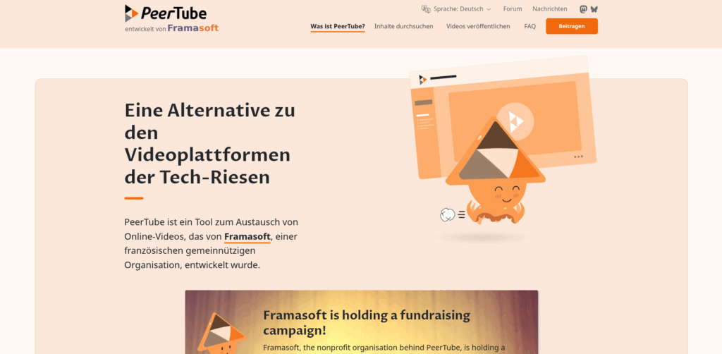 PeerTube bietet eine dezentrale Alternative zu YouTube. Es funktioniert ohne zentrale Server, indem Videos direkt zwischen den Usern über Peer-to-Peer-Technologie geteilt werden. So werden Werbung und Tracking vermieden. PeerTube fördert unabhängige Videoproduktion und demokratischen Medienkonsum, ideal für Good Rebels, Kultur- und freie Medienschaffende [7].