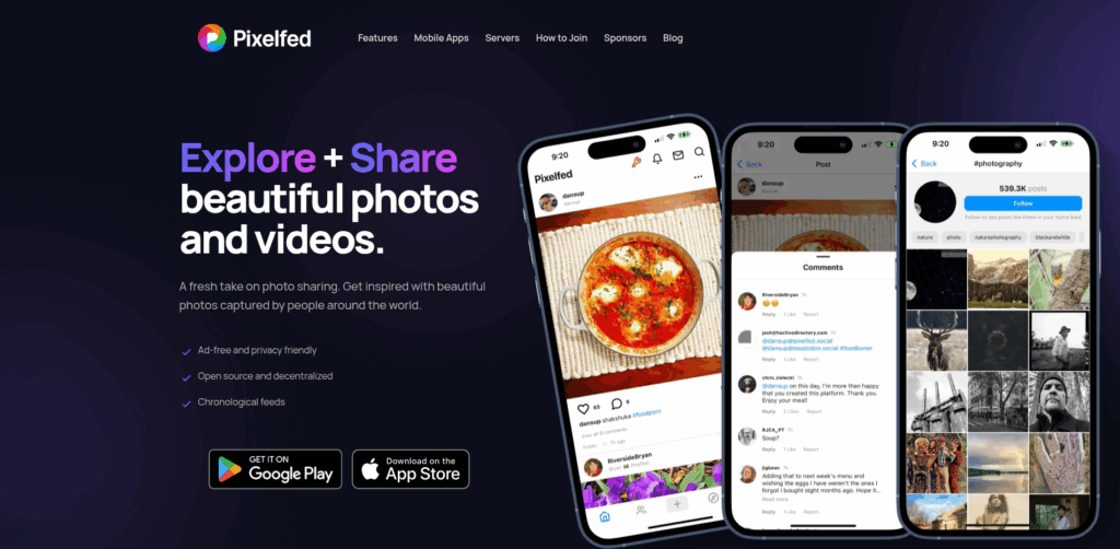 Pixelfed ist eine datenschutzorientierte Instagram-Alternative. Die Plattform betont visuelle Kreativität ohne Werbung und Datenhandel. Pixelfed-Anwenderinnen genießen Freiheit bei der Gestaltung ihrer Profile und Inhalte, während gleichzeitig die Kontrolle über persönliche Daten erhalten bleibt. Die Open-Source-Plattform wächst stetig und verbindet ebenfalls ins Fediverse [8].