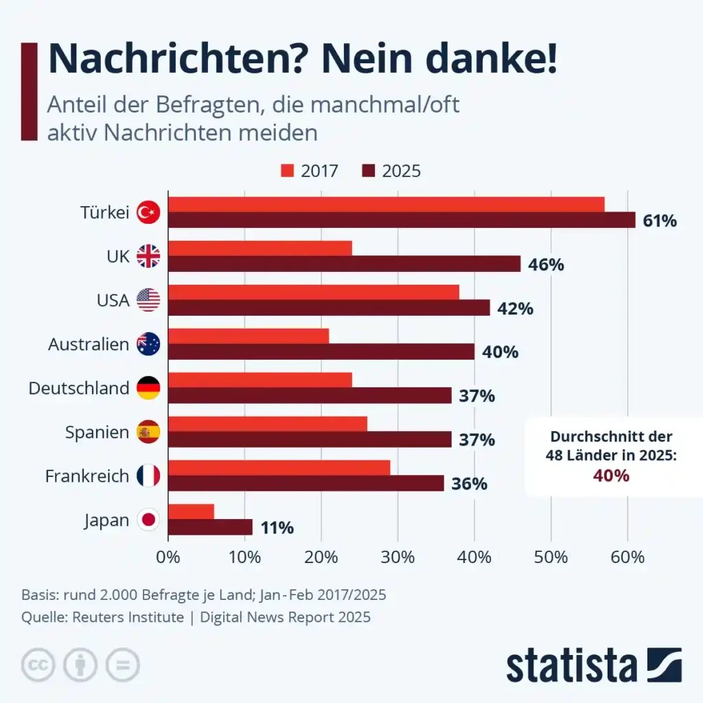 In meinem Umfeld gibt es immer mehr Menschen, die sich bewusst entschieden haben, keine Nachrichten mehr aufzunehmen. Deshalb habe ich mir als erstes angeschaut, warum es uns eigentlich überhaupt so schwerfällt, uns politisch auf dem Laufenden zu halten?